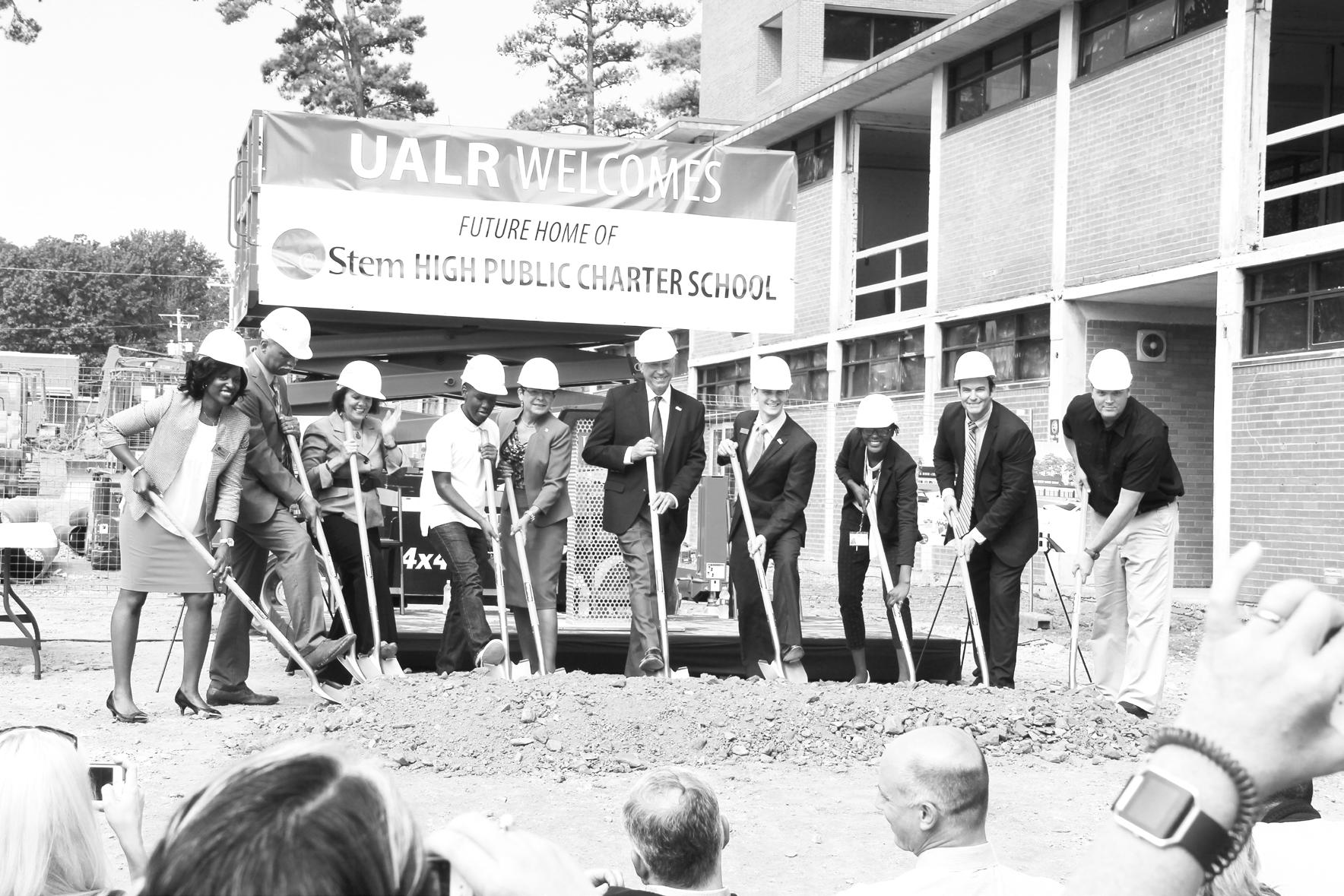 Construction officially began Sept. 14 on an innovative partnership between UALR and eStem Public Charter Schools, Inc. A groundbreaking ceremony was held to further release details about the joint effort to establish a tuition-free high school on the campus of UALR. This kind of project will be the first of its kind in the state.