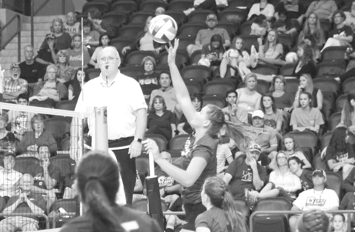 from there. Little Rock native Evie Grace Singleton felt right at home in the Jack Stephens Center. She led the Bulldogs with 27 kills. Taylor Lindberg had another great game for the Lady Trojans with 39 assists and three blocks.