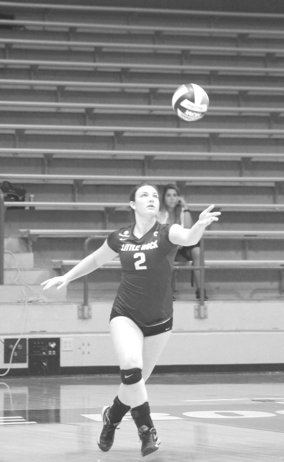 In their last game of the tournament, UALR was able to finish their first ever home tournament on a strong note. The lady Trojans won a decisive victory over UT Martin, in which they won in straight sets. The victory brought their tournament record to 2-2 and their overall record to 2-5. The marvelous Taylor Lindberg continued her excellent performance in the tournament issuing another 38 assists and grabbing four digs. Veronica Marin went an amazing 64% on kill shots, going nine for 14. Her excellent play throughout the tournament was awarded by her being named to the AllTournament Team.