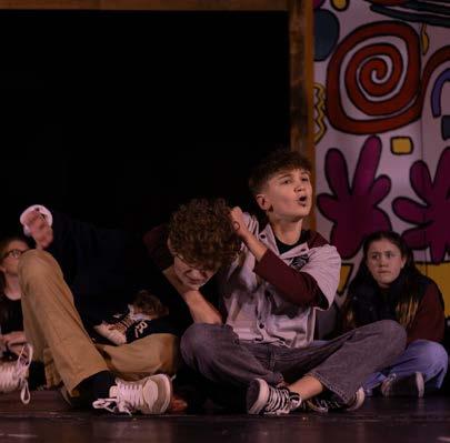 Act 2 continued the celebration with dance, vocals, and community-centered performances. The ensemble, including Brianna Blackledge, Katherine Dutton, Ella Blevins, Amanze Henderson, Ollie Fenton, Hattie Fenton, Libby Rittenhouse, Elen, Bree Lunsford, and Susan Rittenhouse, opened with the dance number “Sparkle Jolly Jingle.”