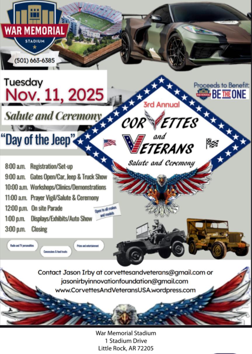 “Corvettes and Veterans” is being planned as a wonderful community and public event for everyone this Veterans Day, November 11, 2025, to honor ALL Veterans, and to also acknowledge the legacy of War Memorial Stadium, as it was originally intended to be a living, breathing, War Memorial for the future… honoring ALL those who served in the “Great Wars of World War I and World War II.” War Memorial Stadium is a living memorial, a special place, a place built to be special.”