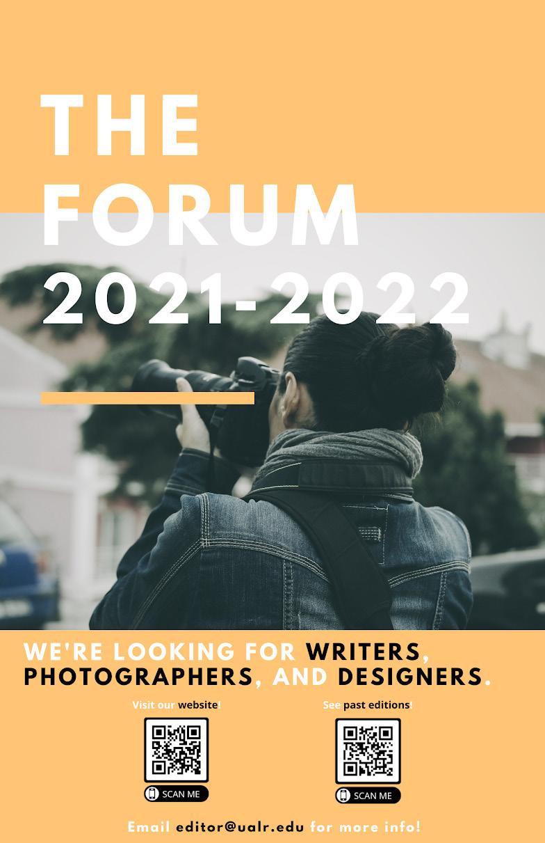 Letters should be emailed to editor@ ualr.edu or sent to: The Forum, University of Arkansas at Little Rock, Donaghey Student Center, Suite 116, 2801 S. University Ave., Little Rock, AR 72204
