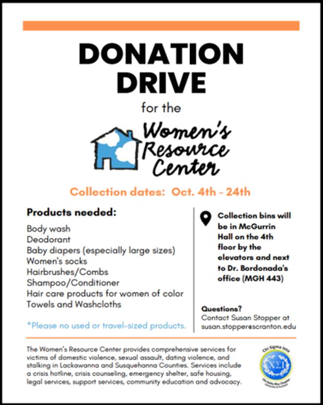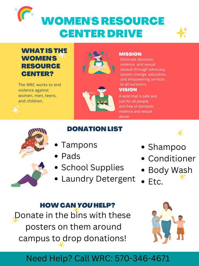 The Women's Resource Center provides comprehensive services for victims of domestic violence, sexual assault, dating violence, and stalking in Lackawanna and Susquehanna Counties. Services include a crisis hotline, crisis counseling, emergency shelter, safe housing, legal services, support services, community education and advocacy.