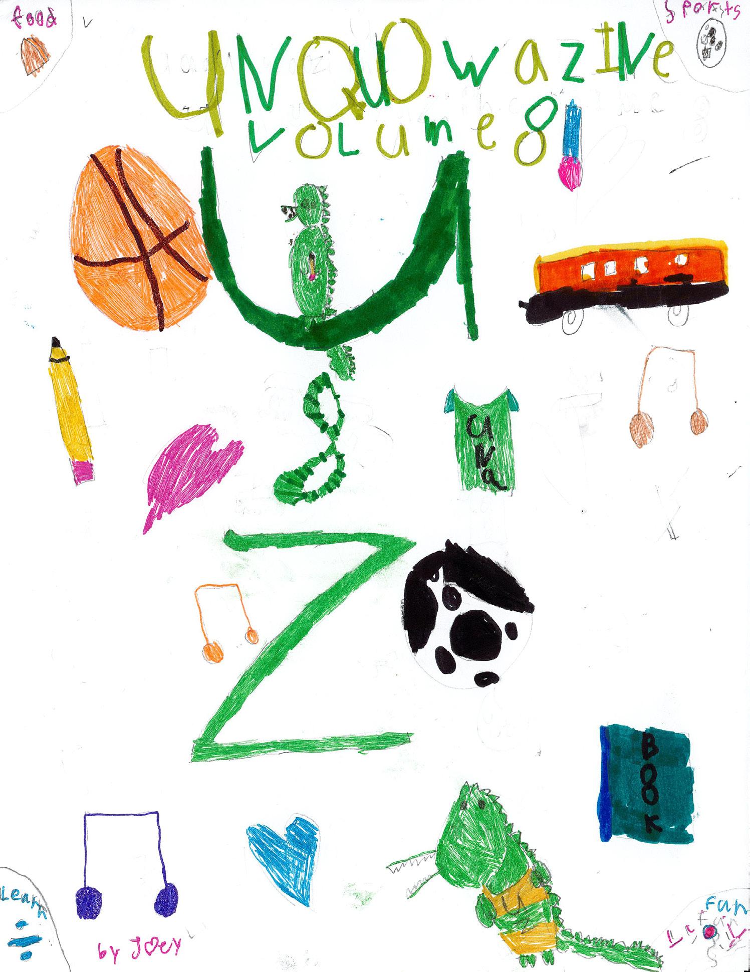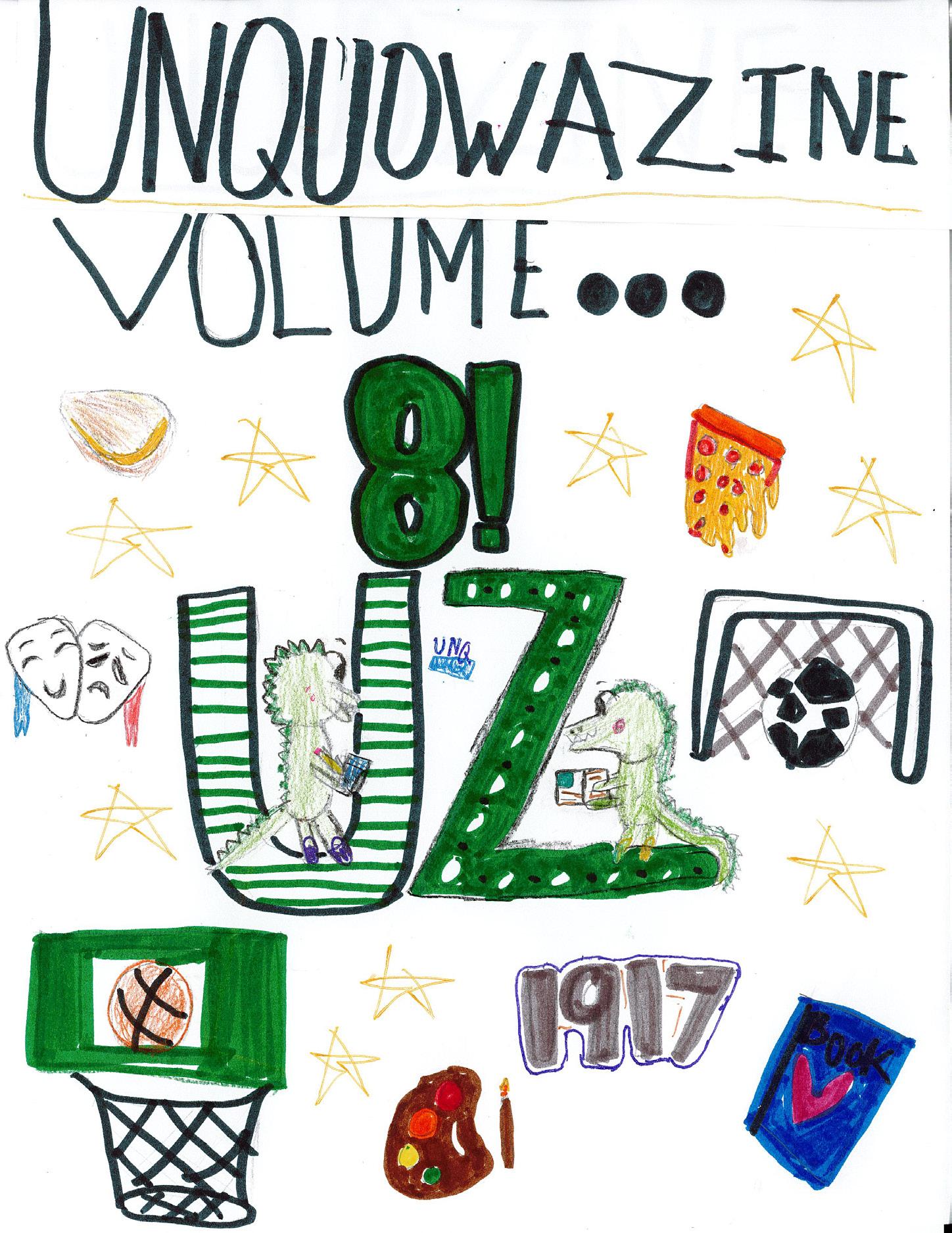 We would like to thank everyone, including our staff, for contributing to Unquowazine They made original work in the form of interviews, comics, and artwork. Also, Joey and Quinn did an excellent job on the cover. Lastly, we would like to thank Mrs E for guiding us as we made Unquowazine Volume 8