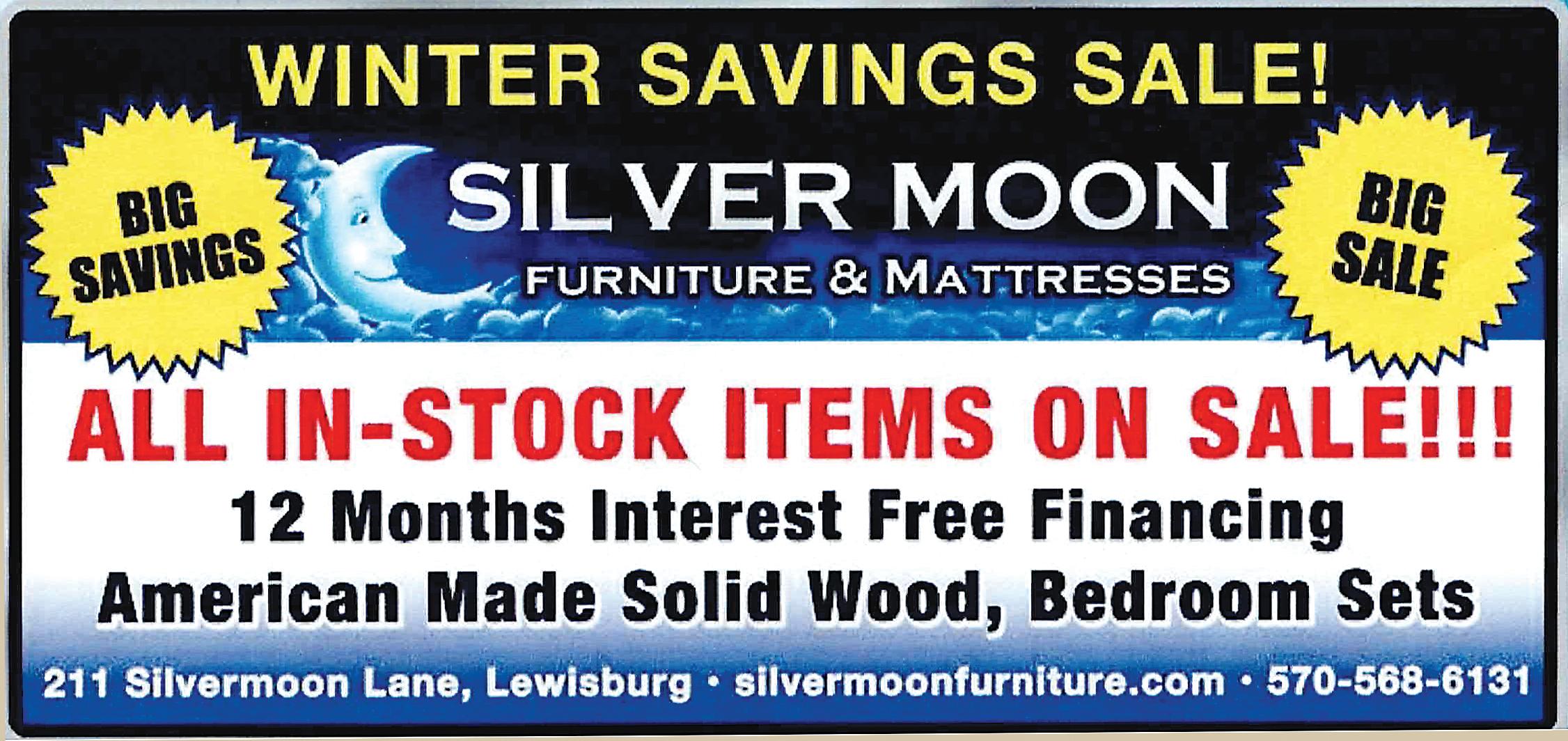 2 YOUR HOMETOWN COMMUNITY PUBLICATION OF THE SUSQUEHANNA VALLEY • THE VALLEY TRADER Weekly • November 21st, 2022 - November 27th, 2022 • PLACE A CLASSIFIED AD — TEXT US TODAY 570-444-9850 S ¥ C R O S S W O R D S ¥ H O M E I M P R O V E M E N T ¥ E V E N T S LC Family Owned and Operated for 41 Years Published by: Oberdorf Publishing P.O. Box 392 Lewisburg, PA 17837-0392 Business Telephone: 570-524-0962 or 570-444-9850 Max 24 Hour a day 7 days per week NEW FAX Your Ad Text Me Classified 570-444-9850 For classifieds and business ads E-mail Your Ads: thevalleytrader@yahoo.com Web Site Address: www.thevalleytrader.com Valley Vehicle Fin er VALLEY HO E IMPROVEMENT VALLEY AUCTIONS VALLEY HEALTH MIKE’S ELECTRICAL REPAIR Mike Levan, Proprietor 570-546-9189 NOW OFFERING MAGNETO REPAIR SPECIALIZING IN REBUILDING: Starters Alternators Generators (Automotive, Heavy Duty, Farm, Etc.) 671 PEACH ORCHARD RD. • MUNCY, PA 17756 Located 4 miles Southwest of Muncy on Peach Orchard Road LIFT GATE MOTORS LAWN MOWER STARTER SNOW PLOW MOTORS BOAT STARTERS AND ALTERNATORS INTERSTATE BATTERIES ALSO OFFERING NEW STARTERS & ALTERNATORS LYCOMING VALLEY BATTERIES LLC. “ALL YOUR BATTERY NEEDS” “INTERSTATE BATTERY MASTER DEALER” 1495 Route 405 Hughesville, Pa 17737 P: 570-584-2996 F: 570-584-2964 ib4675@centralpenn.biz Gabe Gush Owner Hours: Monday thru Friday 6:30am-6:00pm; Saturday 6:30am-2:00pm at Sunbury Motors Oil/Lube/Filter Change with multi-point inspection $37.95 (up to 5 qts. Synthetic Blend Oil) Savings of $2.00 Expires 12/31/22 at Sunbury Motors 7.3L…$124.95 6.4L…$124.95 6.0L…$124.95 6.7L…$124.95 (includes multi-point inspection) Synthetic Oil Extra Expires 12/31/22 at Sunbury Motors p TIRE ROTATION $9.75 (Savings of $2.25) Expires 12/31/22 Power Stroke Diesel Oil Change Special $70 Rebate 70 Or 30,000 FordPass Reward Or FordPass Reward Points on a set of 4 Tires on a set 4 Tire Rebate Valid Through 12/31/22 Tire Rebate Valid 12/31/22 At Sunbury Motors (behind showroom) 943 N. 4th St., Sunbury, PA 570-286-4456 Construction Complete! 4 Additional Bays! Come visit our Remodeled Waiting Room! CLASSIFIED