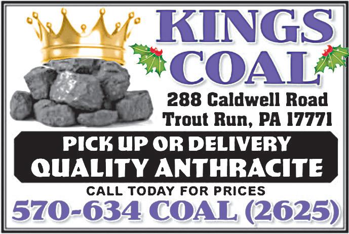 CALL TODAY FOR PRICES BULK OR BAG COAL * DELIVERY AVAILABLE 288 Caldwell Rd., Trout Run, PA 17771 PA175804