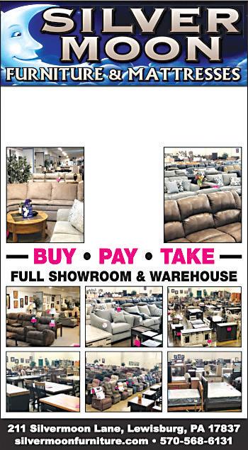 YOUR HOMETOWN COMMUNITY PUBLICATION OF THE SUSQUEHANNA VALLEY • THE VALLEY TRADER Weekly • March 18th, 2024 through March 24th, 2024 • PLACE A CLASSIFIED AD ~ TODAY 570-444-9850 ~ $1.00 per issue 9 O er for new and qualifying former customers only. Important Terms and Conditions: All o ers require credit qualification and 2-year commitment with early termination fee, and eAutoPay, and cover core programmi ng, local networks, and equipment. Upfront activation and/or receiver upgrade fees may apply based on credit qualification. O er ends 4/10/24. O er requires 2-year commitment: Early termination fee of $20/mo. remaining applies if you cancel early. Included in 2-year price guarantee at $84.99 advertised price: America’s Top 120 programming package, local channels, HD service fees, and Hopper Duo Smart DVR for 1 TV. Included in 2-year price guarantee for additional cost: Programming package upgrades ($99.99 for AT120+, $104.99 for AT200, $114.99 for AT250), monthly fees for upgraded or additional receivers ($7 per additional TV, receivers with additional functionality may be $10-$15). NOT included in 2-year price guarantee or advertised price (and subject to change): Taxes & surcharges, add-on programming (including premium channels), DISH Protect, and transactional fees. Premium Channels 3 Mos. Free: After 3 mos., you will be billed $30/mo. for Paramount+ with SHOWTIME, STARZ and DISH Movie Pack unless you call or go online to cancel. Remote: The DISH Voice Remote with Google Assistant requires an internet-connected Hopper, Joey or Wally device. Customers must press the Voice Remote button to activate the feature. Other: All packages, programming, features, and functionality and all prices and fees not included in price guarantee are subject to change without notice. After 6 mos., if selected, you will be billed $11.99/mo. for DISH Protect unless you call to cancel. After 2 years, then-current everyday prices for all services apply. For business customers, additional monthly fees may apply. Free standard professional installation only. Hans CedarDale Satellite | 8 0 0 - 8 4 8 -21 9 8 Rou te 220, H ughes v ille | hanscedardale com PREM 32242 America’s Top 120 190 Channels $84.99/mo. All-time favorites and locals included with 2-Year TV Price Guarantee Everything you love in one place Watch live TV and your favorite streaming apps* without switching inputs. *Certain apps require separate subscription Get the Heartland Pack with 14 channels included for one year at no cost! Family Movie Night, on us! 300 March into Spring See how DISH and Hans CedarDale can save you money. Streaming service requires membership. Certain apps require a subscription directly from the streaming service. All trademarks are property of their respective owners Plus, sign up for DISH and get a prepaid card up to $300. Restrictions apply. Gift card courtesy of Hans CedarDale. MARCH MADNESS !! MARCH MADNESS !! Everything In Store Low Prices For March SAVE March’s Additional 10% 10% 607 Old Route 15 New Columbia, PA 17856 zman82@gmail.com 570-713-5116 Since 1921 Major Credit Cards Accepted