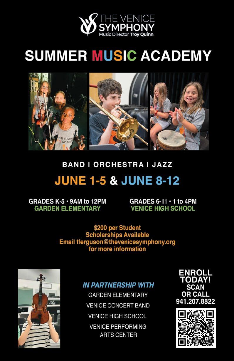 Beyond the concert hall, we are proud to continue investing in the future of music education in our community. Venice Summer Music Academy is now officially open for registration! Students in grades K–11 can participate in this immersive two-week program in early June, designed to inspire young musicians and nurture a lifelong love of the arts. We are proud to expand opportunities for the next generation to learn, grow, and discover their musical voice. We invite you to visit thevenicesymphony.org for tickets, concert details, and the latest updates on our season.