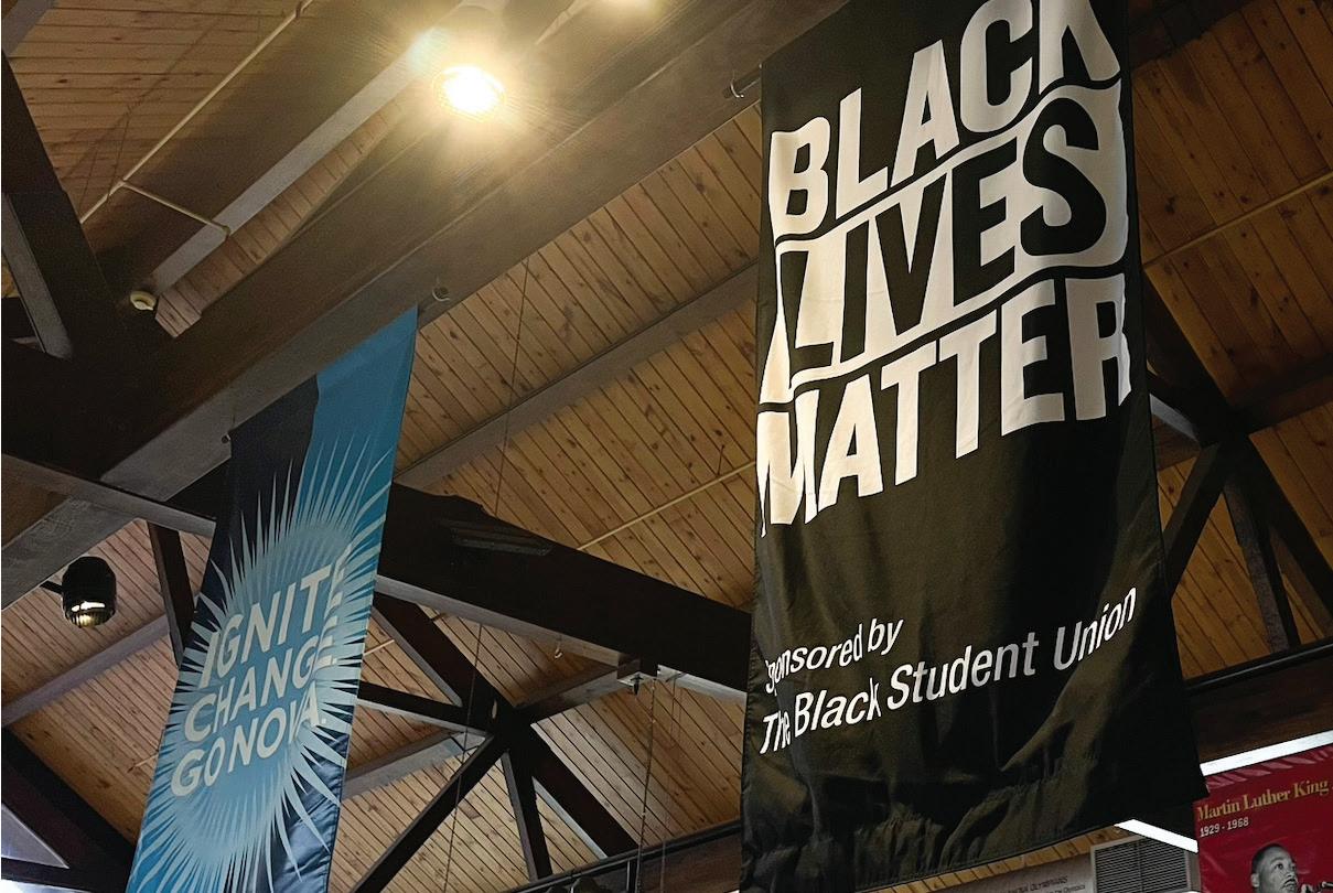 Villanova University made history within the Villanova community. We made a dream into a reality by fighting for a simple but major way to be seen. With the unveiling of the Black Lives Matter banner, our hope is for all individuals who are a part of the Black community at Villanova, understand that they are heard, seen, loved, and supported.We also want the Black community to know that they will always have an organization who will work tirelessly to ensure that Villanova never falls short in those areas, while exemplifying our university’s core values: unitas, caritas, and veritas. But, more importantly we want those within the Black com-