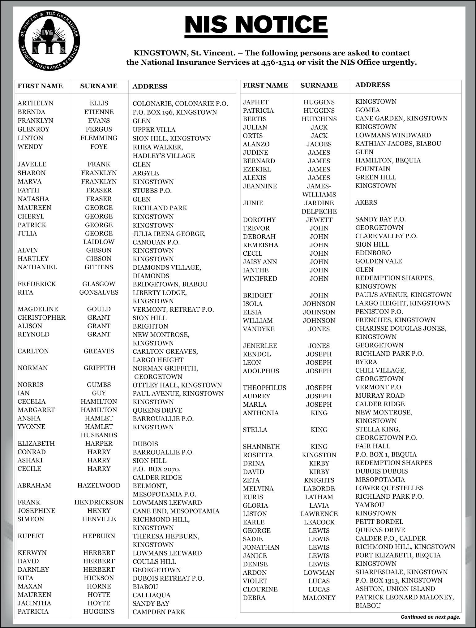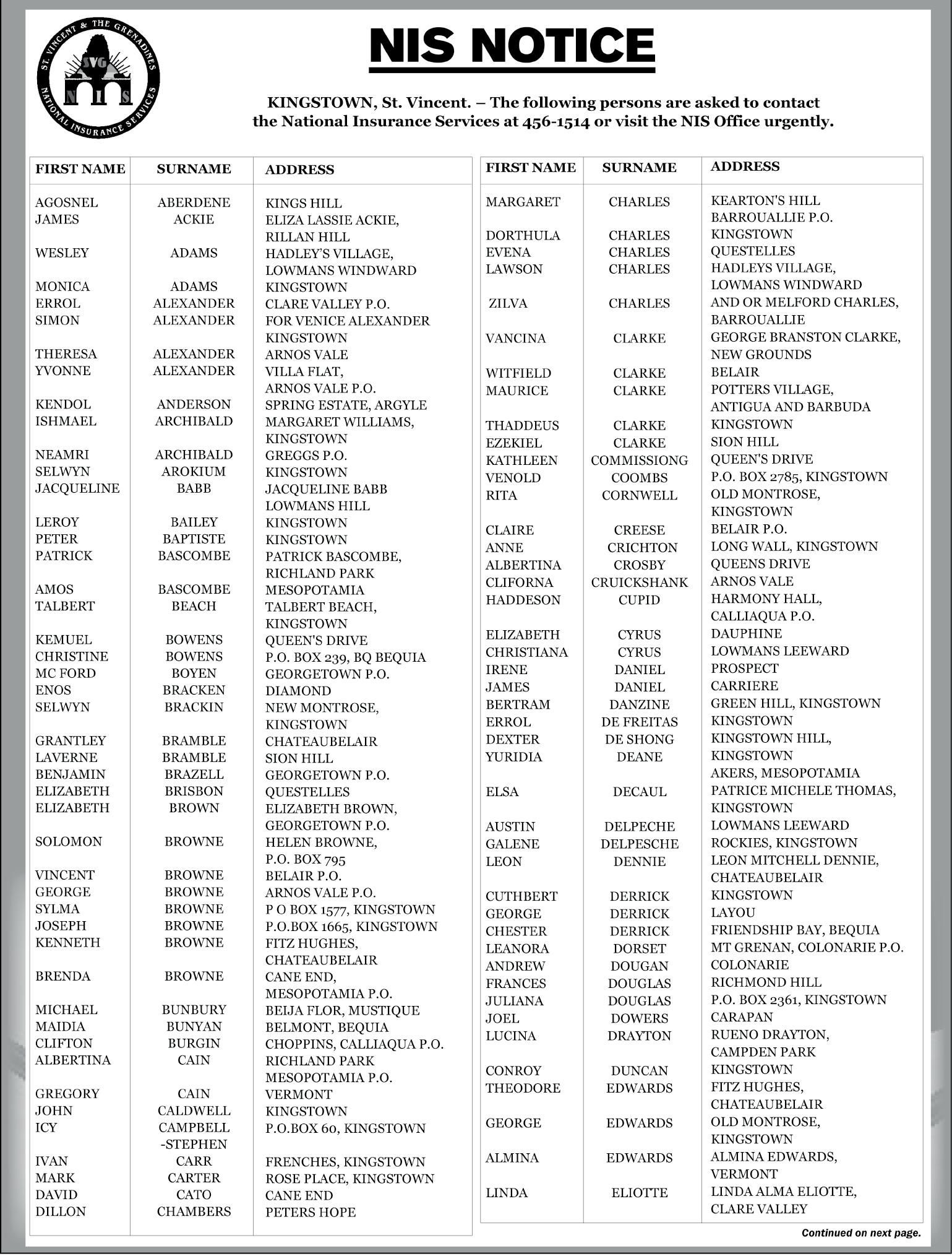 Mailing Address: The Vincentian Publishing Co. Ltd., P.O. Box 592, Kingstown, St Vincent and the Grenadines.