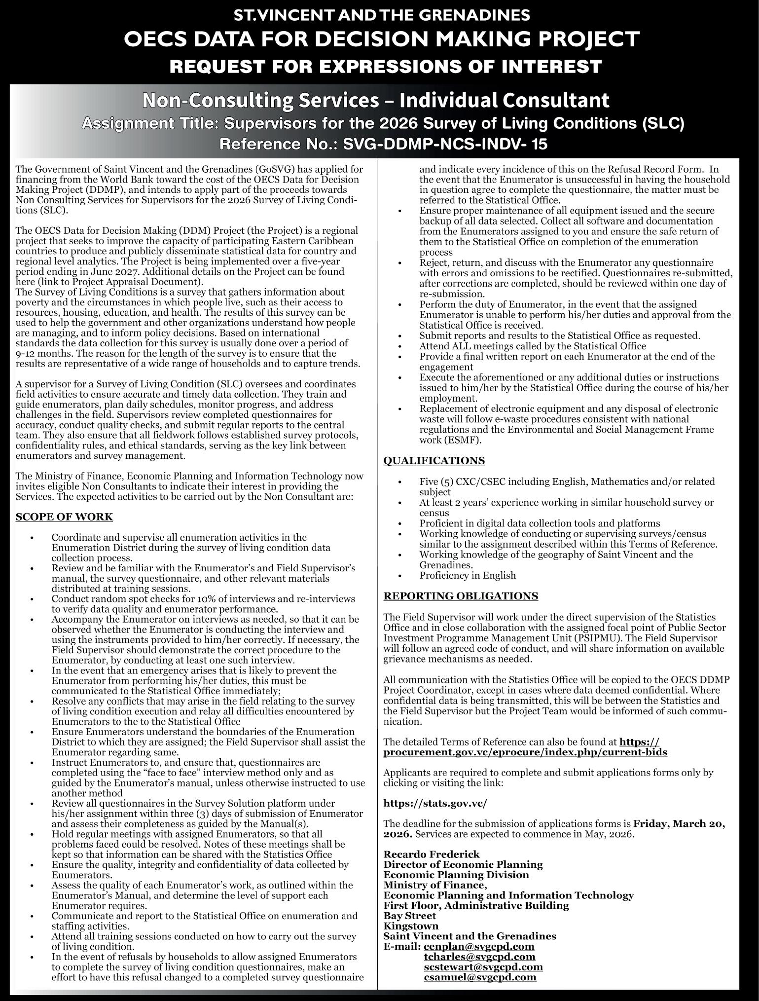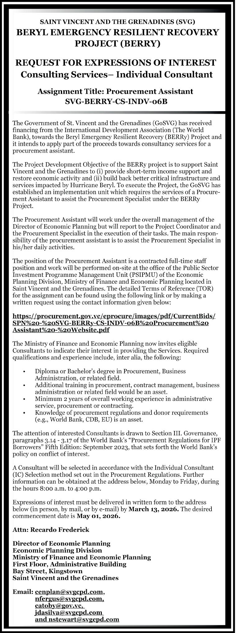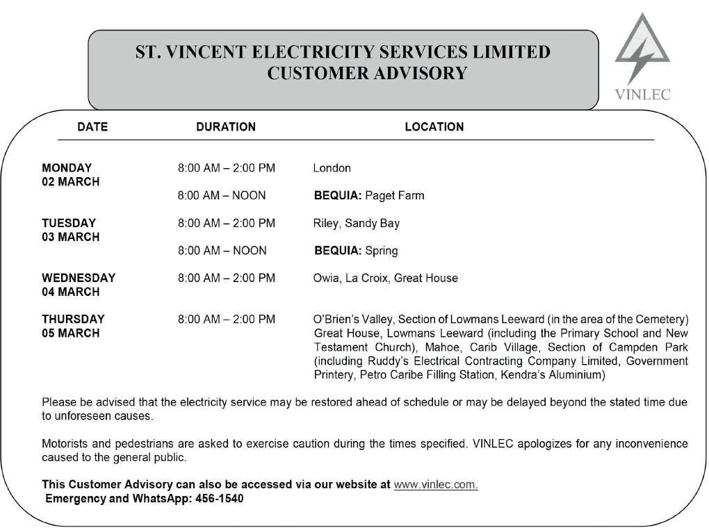 mainland St. Vincent and the Grenadines islands. All scheduled sailings have been discontinued from the stated date.