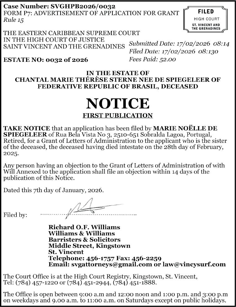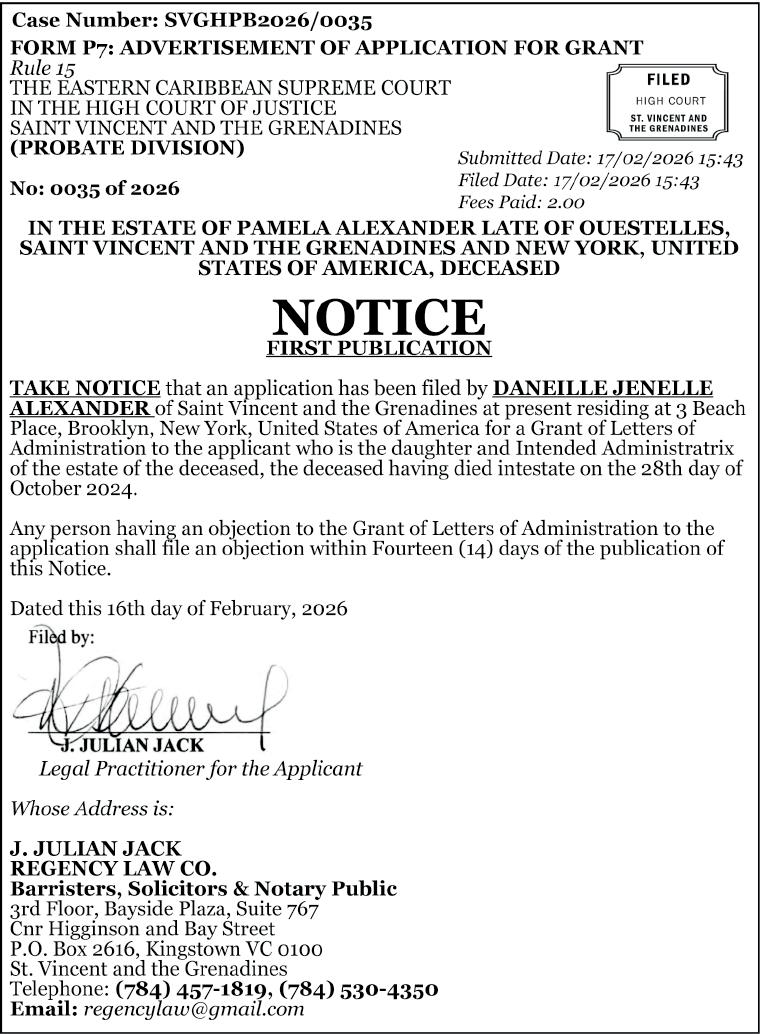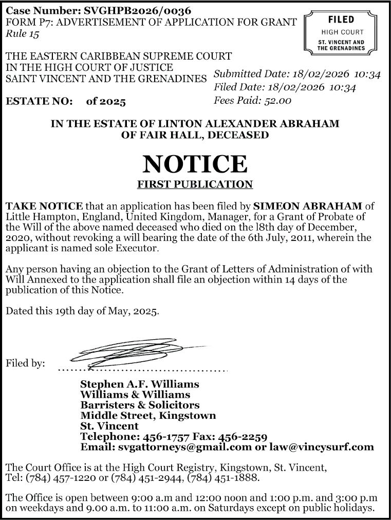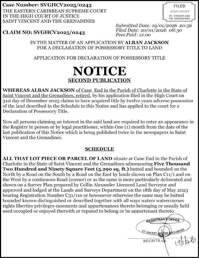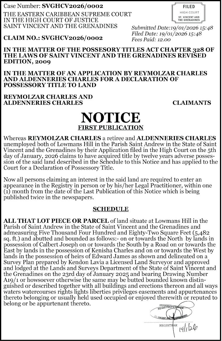 Meanwhile, another person, Tevin Bailey of Layou, has been charged in connection with the KFC incident. He pleaded not guilty when he appeared before Senior Magistrate Tammika McKenzie at the Kingstown Magistrate’s Court on Monday, and the matter was adjourned and transferred to the Serious Offences Court for Tuesday, March 2.