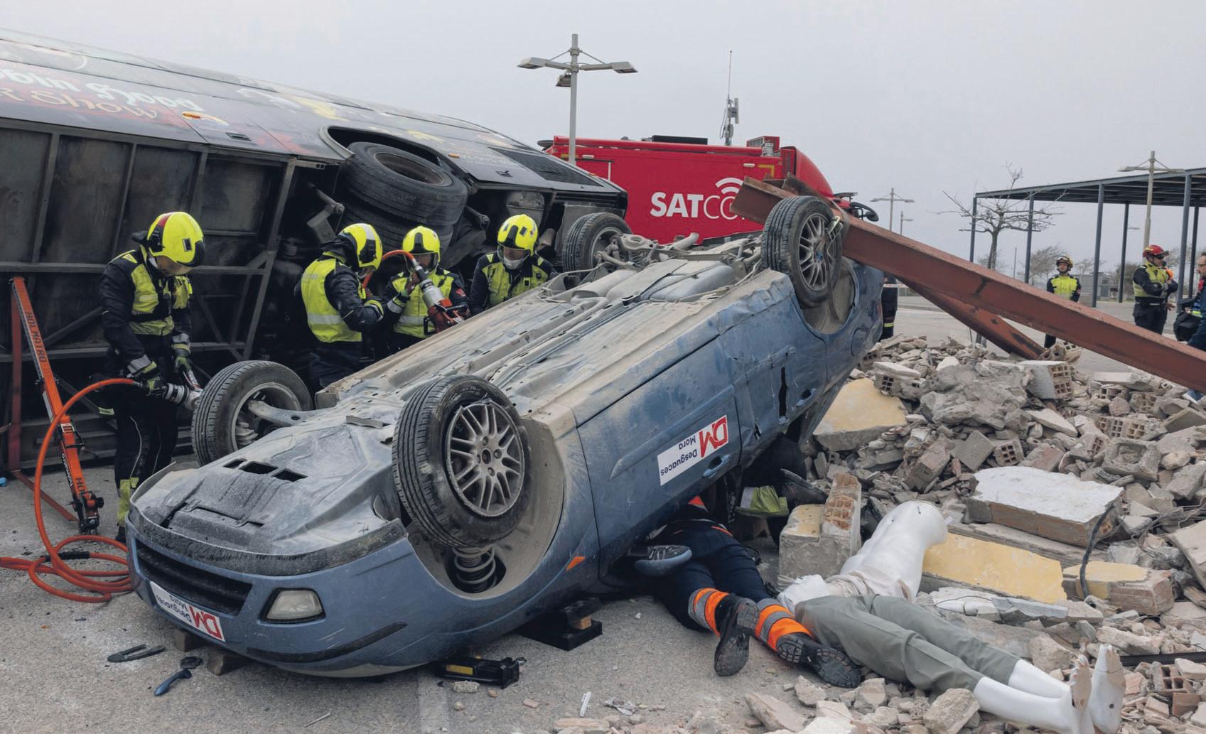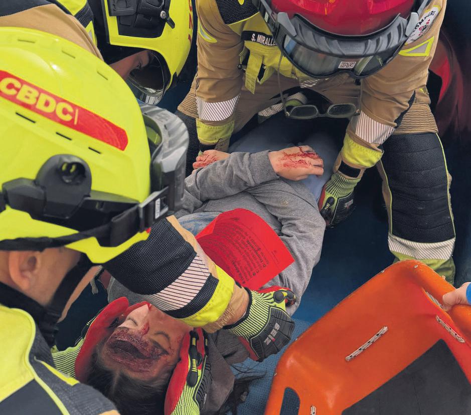 Fire crews confirmed simulated building failures at Nuestra Señora del Rosario school and IES Mare Nostrum. Search-and-rescue teams, backed by specialist sniffer dogs, combed through staged rubble for “trapped” victims.