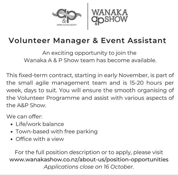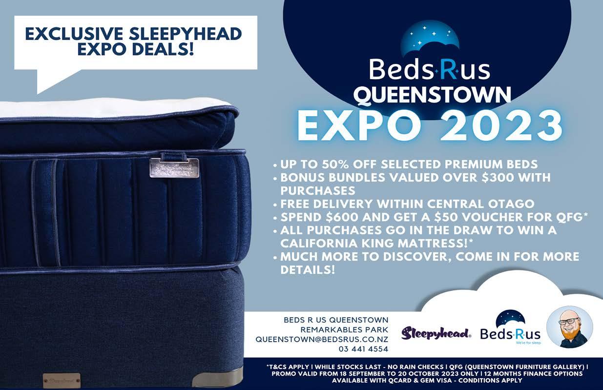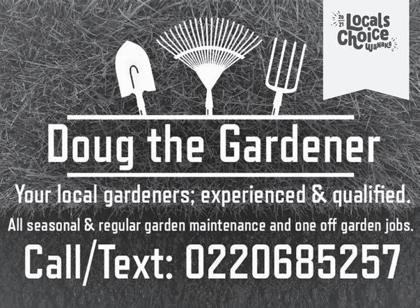 Upper Clutha Messenger 4th October 2023 Let’s make your event epic 50, Cardrona Valley Road Wānaka cardrona.com/apres Cater it with a banquet feast, wood-fired pizzas, or grazing snacks, we’ve got it all. Reach out to the team at apres.foh@cardrona-treblecone.com or drop us a line on our website. We’ll throw an awesome event together. From birthdays to Christmas parties, and business meetings to family celebrations, Après has your next event covered. - Looking after our LocalsBook a night at Cross Hill Geodomes and receive 10% off your stay PLUS get The Secret Sauna sessions, Cheese Platter and Maude Wine for 2 people. That’s over $150 in savings! Call or email us to book today! Treat yourself to a night away with a treat from us. Our unique, luxury geodesic domes are just what you need to revitalise after winter! Limited time only. Ends 31 October 2023. subject to availability. Email stay@crosshill.co.nz or phone 027 226 0290 P: 027 420 6250 E: southern@shadeplus.co.nz www.shadeplus.co.nz Products: Shade Sail Specialists Screens & Windbreaks Sandpit Covers, Shade 7 umbrellas NZ Made Up to 10 year Warranty Full Design & Install Quality & Value All Work Guaranteed Jean Kenney 021 048 8698 or 443 6454 • www.treetamers.co.nz Wanaka’s Professional Arborists • Trustworthy, professional care • Pruning, shaping, thinning • Tree risk qualifications • Stump grinding • Complete tree removal • Hedge trimming • Storm damage • Qualified and insured • Owner operated • QLDC approved Trusting us for 20 years! Helping New Zealanders do more Whether it’s a new car for the family, a boat for the lake or equipment for the business, MTF Finance Central Otago can help. Offer of finance is subject to terms, conditions, lending criteria, responsible lending inquiries and checks. See mtf.co.nz/terms for details. mtf.co.nz/centralotago Julia Bentley 027 722 0027 julia.bentley@mtf.co.nz Fi Sim 027 433 5511 fi.sim@mtf.co.nz Call Julia or Fi today Ph: 022 4069879 New Buildings Renovations Repairs XFI INGTONS Get Fixed Fixingtons@gmail.com Local GIB Fixers