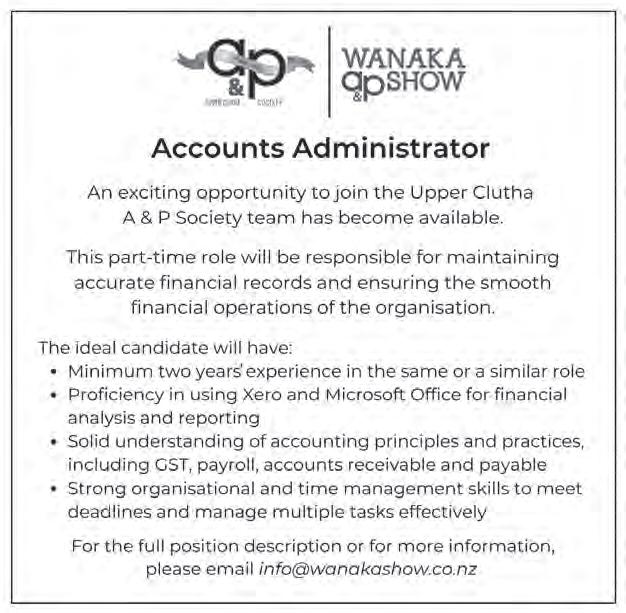 Upper Clutha Messenger 7th June 2023 OFF S E L E C T E D B E D S + FREE DELIVERY U P T O 50% BLOCKOUT LINING ON CURTAINS & ROMAN BLINDS FREE 20 ARDMORE STREET, WANAKA | (03) 443 4997 MCW.NZ INTERIOR DESIGN | FURNITURE | CURTAINS | LINEN | BLINDS | FLOORING | WALLPAPER | BEDS ONLINE & IN-STORE NOW! Offer valid until 25/06/2023. Some brands excluded. Terms & Conditions apply. Free Delivery on beds only. Some deals are while stocks last. Q Card lending criteria, fees, terms & conditions apply. E&OE. OFF MM DOWN 30% OFF SELECTED NZ MADE FURNITURE 15% 24 MONTHS INTEREST FREE WITH Q CARD TO WINTER SAY HELLO AT M c KENZIE & WILLIS The colder months are upon us so there is no better time to warm your home up and give it a new look with incredible deals from some of the world’s top interior brands. Say hello to winter at McKenzie & Willis, and keep the heat and that cosy feeling inside. THE VEIN & SKIN CLINIC WILL BE IN WANAKA 15 TH AND 16TH JUNE AT SOAK DAY SPA Soak Day Spa 80 Ardmore Street, Wanaka 03 443 4340 | www.veinandskin.co.nz COSMETIC TREATMENTS See Bernadette for cosmetic injectables –anti-wrinkle – filler. For appointments, phone Soak Day Spa 03 443 4340 Located at 80 Ardmore Street. Wānaka’s Premium Property Specialist Craig Myles - Sales consultant/Director +64 21 467 585 | craig.myles@colliers.com Otago Realty (Wānaka) Ltd. Licensed REAA 2008 Asking price of $3,595,000 inclusive of GST 16 McCaw Mews, Wānaka NEW colliersotago.co.nz/21179263 Exquisite Contemporary Wānaka Living Empowering your business to achieve more 21F Gordon Rd, Wanaka www.driveaccounting.co.nz 03 443 1238