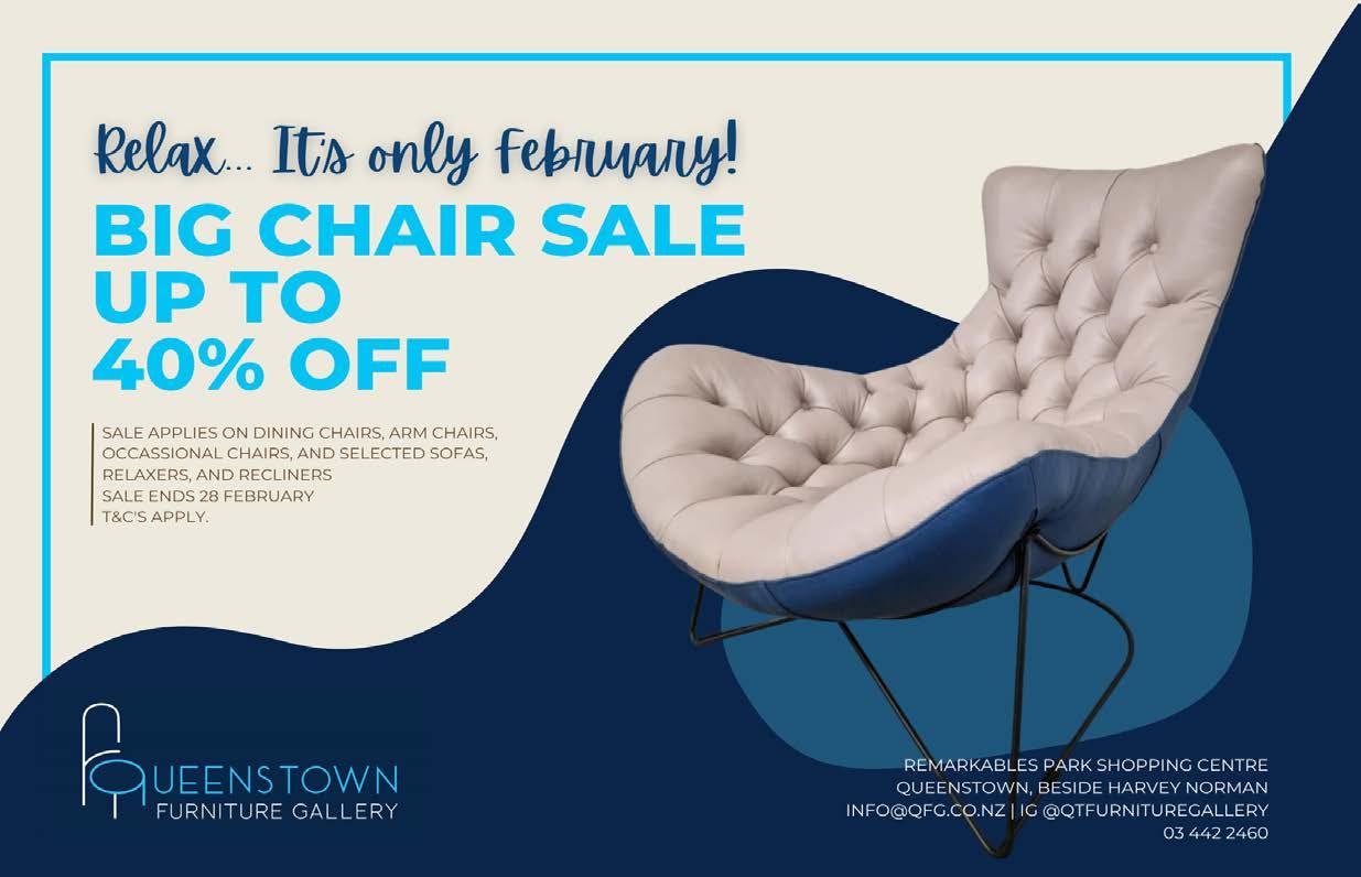 Upper Clutha Messenger 1st March 2023 Your Friendly Local Store 7.00am to 10.00pm 70 Ardmore St, Wanaka Join us for monthly morning tea and a chat. All seniors welcome. Next date: Monday, March 13 9:30 - 11.00am Reception area, Wānaka Community Hub 34 McDougall Street RECONNECTING SENIORS Coffee Connection To register, call 03 443 7799 or email info@communitynetworks.co.nz If tranport is an issue, please get in touch! NETWORK Reconnecting Seniors P: 027 420 6250 E: southern@shadeplus.co.nz www.shadeplus.co.nz Products: Shade Sail Specialists Screens & Windbreaks Sandpit Covers, Shade 7 umbrellas NZ Made Up to 10 year Warranty Full Design & Install Quality & Value All Work Guaranteed CAR, MARINE AND CARAVAN BATTERIES BEST STOCK OF BATTERIES IN WANAKA 03 443 8941 \ WWW.WANAKA-AUTO.CO.NZ 1 CONNELL TERRACE, WANAKA