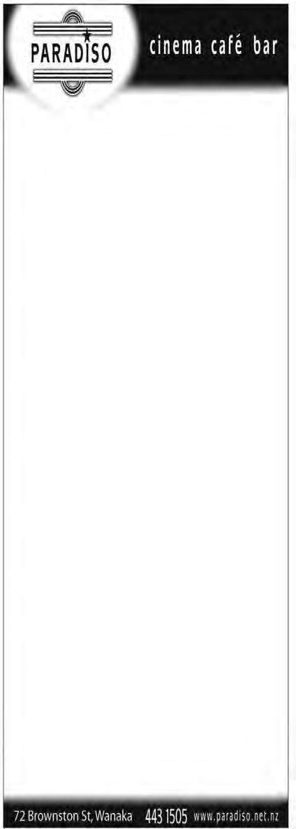 Upper Clutha Messenger 21st December 2022 TREE TAMERS SINCE 2003 • Pruning, shaping, thinning •Remove damage risk • Stump grinding •Complete tree removal • On-site milling • Power line clearance • Council approved • Fully qualified and insured • Free estimate • Owner operated Jean Kenney0210488698 03 443 6454 • www.treetamers.co.nz which means spiders & flies will be too! ⊲ Get your property treated by our qualified technicians ⊲ If it crawls or flies we can treat it! ⊲ Approved pest control solutions Find us on Facebook 03 443 4162 027 251 5147 info@advancedcarpet.co.nz www.advancedcarpet.co.nz SALE IN-STORE & ONLINE 20% OFF STOREWIDE 26TH-28TH DEC Christchurch | Wanaka | Wellington untouchedworld.com Excludes gift vouchers Join us on the 20th of January for an evening of live music. Tickets can be purchased via our website or QR code PAUL UBANA JONES at the water’s edge WANAKA