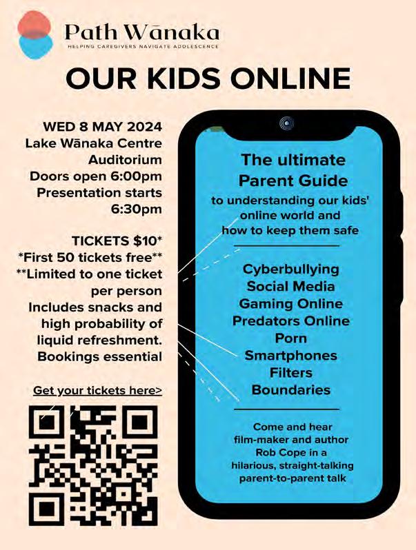 Our Kids Online, 6.00pm at Lake Wanaka Centre. Tickets from our Facebook page - Path Wanaka.