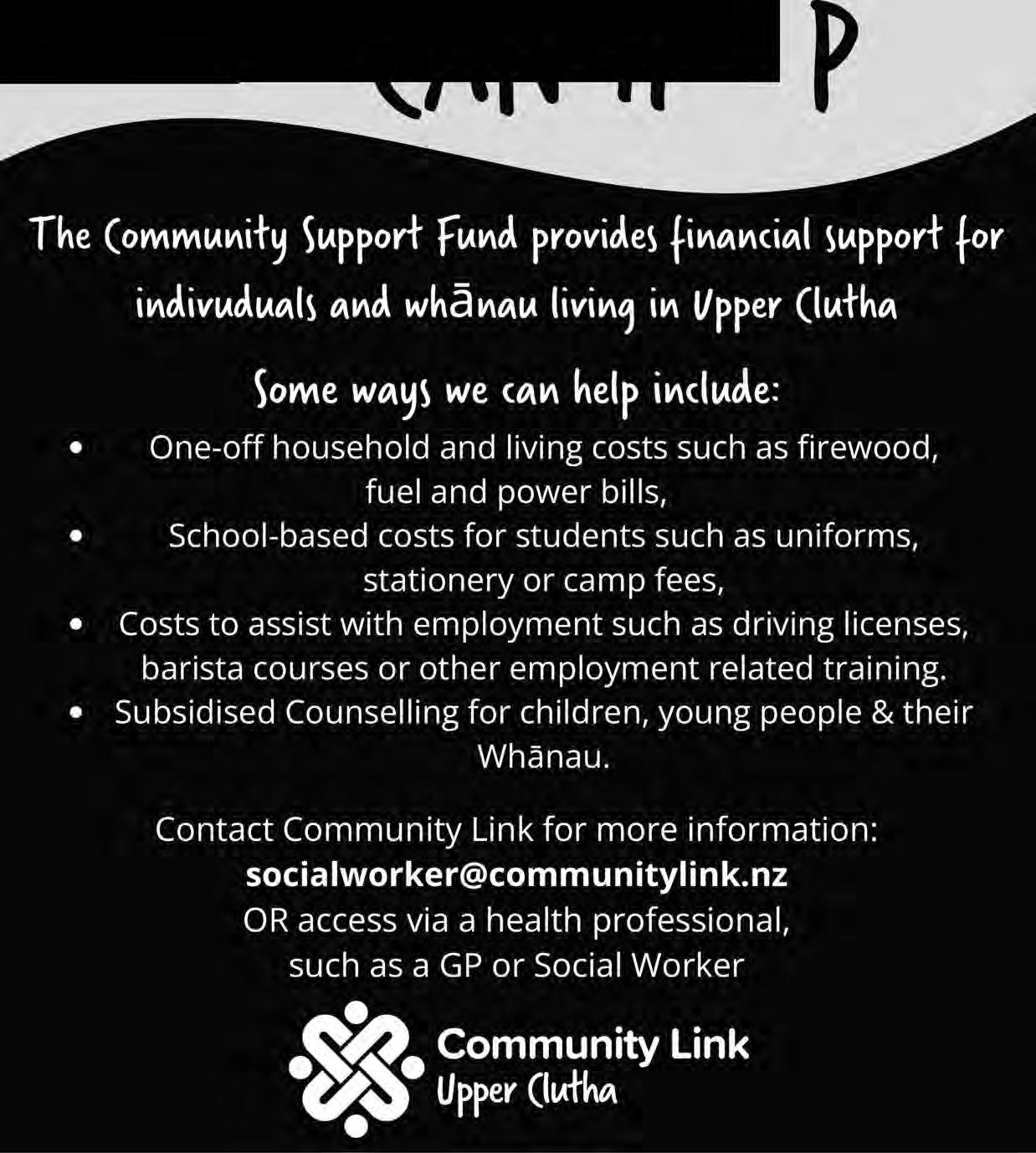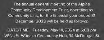 COMMUNITY LINK - Notice of Annual General Meeting for the financial year 31 December 2023, Tuesday 14 May, 5.00 pm at Wanaka Community Hub, 34 McDougall Street, Wanaka.