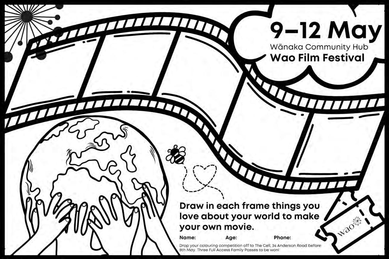 Colour in, email your artwork to The Messenger: hello@mymessenger.co.nz or drop it in to The Messenger o ce, 24 Dungarvon Street, for a chance to win a youth Paradiso Cinema ticket!