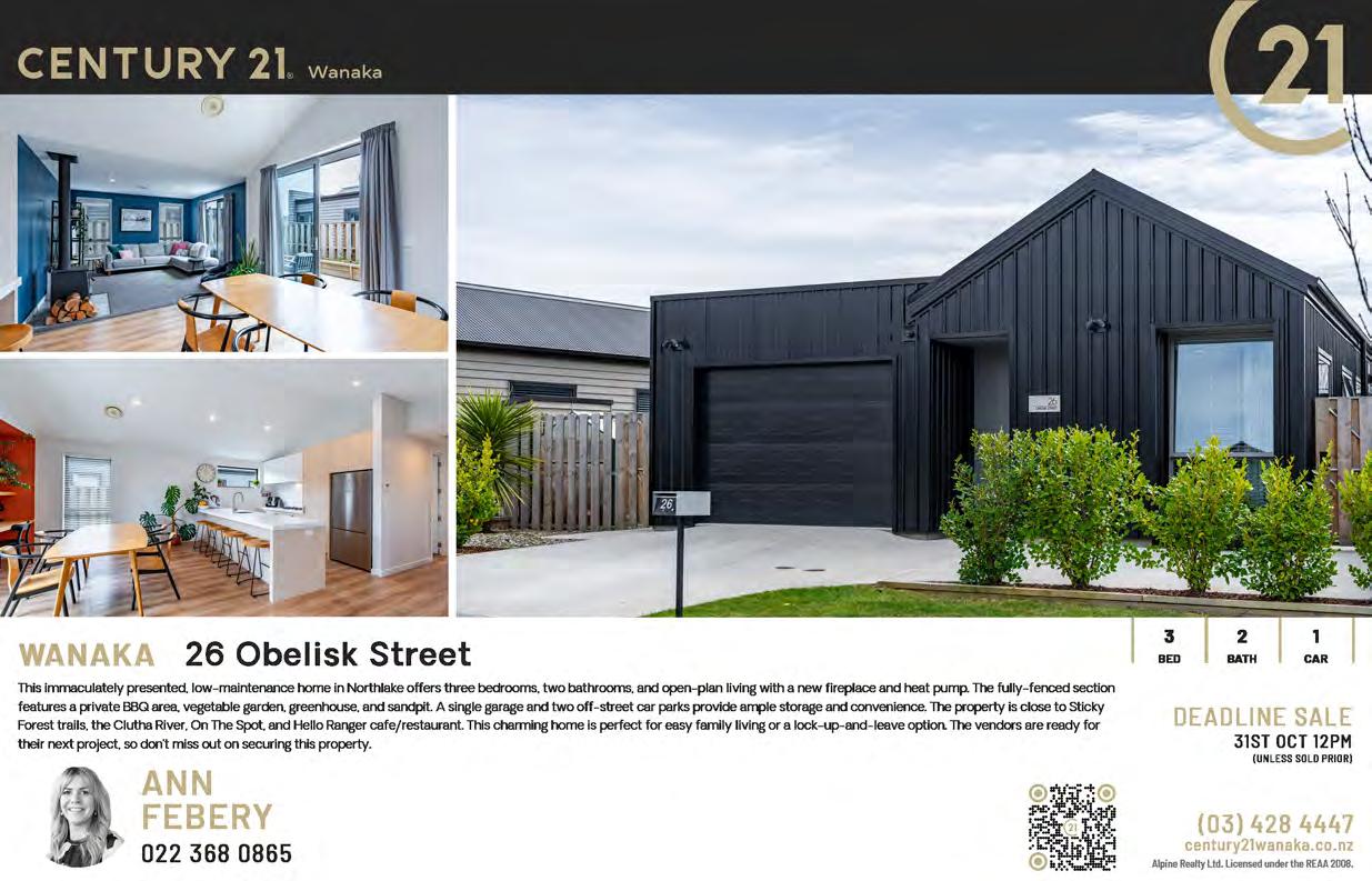 26 Meadowstone Drive, Wanaka 11.00 - 11.30amSat 05 OctAuction 23/10