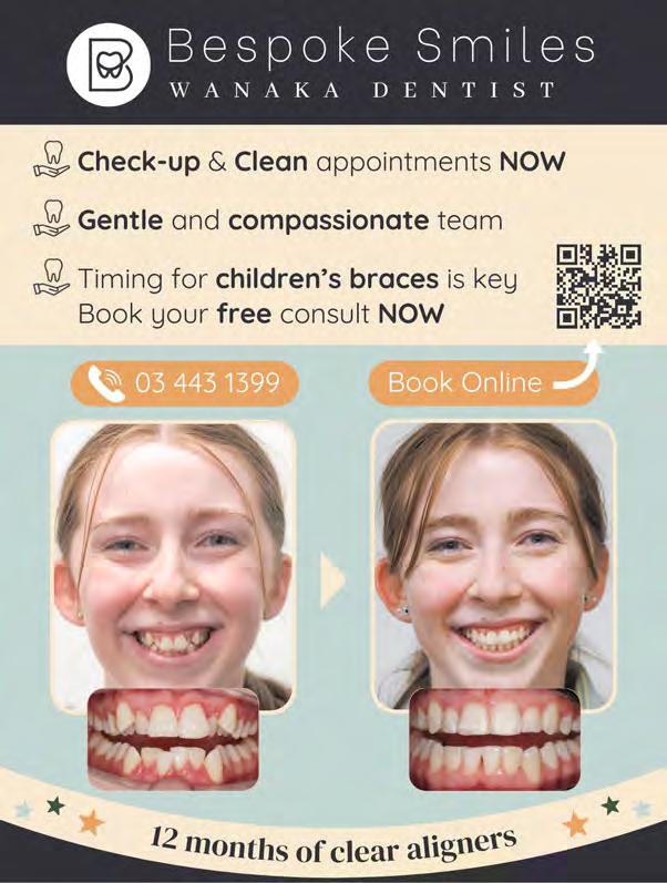 Rotary Club of Wanaka. 6.00pm, The Albie Tavern. New members welcome. Pat He ernan 021 569 890. Walking Group. Di erent weekly walk followed by co ee. Join New Life Ladies, ph 021 996 133 Heather. Bridge Club, Presbyterian Church, 91 Tenby Street. www.otagosouthlandbridge.org.nz/wanaka 11.15am, seated by 11.05am. Social. Bring lunch.