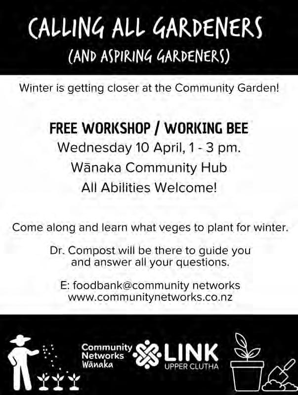Aspiring Rotary Wanaka. 6.00pm 18 In nity Drive, Wanaka. New members welcome. Heather 027 7665 150.