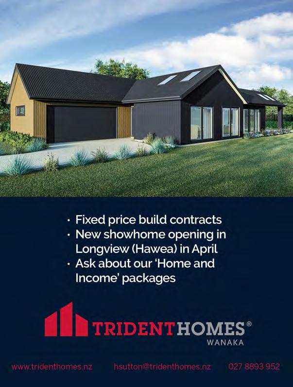 Upper Clutha Messenger 3rd April 2024 03 443 0011 | 0800 108 311 edgewater.co.nz AUTUMN '24 INSTORE & ONLINE UNTOUCHEDWORLD.COM STAY CLOSE TO NATURE LongviewJennianHomesWanaka DisplayHome Opening Soon Lot 427 Longview, Longview Drive, Hawea, Wanaka 167m2 | 3 bdrm DINING LIVING BED 3 BED BED 1 PANTRY GARAGE KITCHEN LDY 31221 DisplayHome Opening Soon Lot 427 Longview, Longview Drive, Hawea, Wanaka 167m2 | 3 bdrm DINING LIVING BED 3 BED 2 BED 1 PANTRY GARAGE ENTRY KITCHEN LDY 31221 JennianHomesWanaka DisplayHome Opening Soon Lot 427 Longview, Longview Drive, Hawea, Wanaka 167m2 | 3 bdrm DINING LIVING BED 3 BED 2 BED 1 PANTRY GARAGE ENTRY KITCHEN LDY 3122 JennianHomes DisplayHome Opening Lot 427 Longview, Longview Drive, Hawea, 167m2 | 3 bdrm BED 3 BED 2 PANTRY GARAGE ENTRY KITCHEN LDY JennianHomesWanaka DisplayHome Lot 427 Longview, Longview Drive, Hawea, Wanaka 167m2 | 3 bdrm DINING LIVING BED 3 BED 2 BED 1 PANTRY GARAGE ENTRY KITCHEN LDY 31221 JennianHomesWanaka DisplayHome Opening Soon Lot 427 Longview, Longview Drive, Hawea, Wanaka 167m2 | 3 bdrm DINING LIVING BED 3 BED 2 BED 1 PANTRY GARAGE ENTRY KITCHEN LDY 31221 Opening Hours Friday and Saturday 1.00 - 4.00pm Jennian Homes Wanaka Display Home 65 Longview Drive, Hawea Jennian Display Longview 167m2 | 3 bdrm • NZ’s most awarded Master Builders Brand • 100% Completion Promise: In 40 years we’ve never failed to complete a home to practical completion • 36-month defect policy, 24 months longer than most others • Still offering fixed price contracts for your peace of mind NOW OPEN