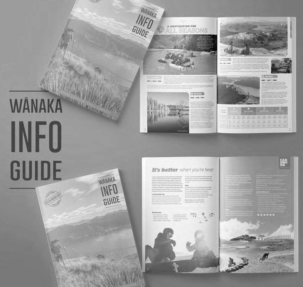 The Wānaka Info Guide is produced annually, is free of charge and distributed throughout Wānaka’s hospitality sector. It is the ‘go to guide’ of where to go, what to do, where to dine and shop when visiting our beautiful region.