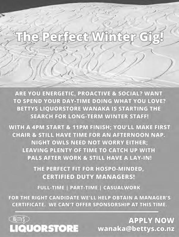 Please send your CV to kerri@aspiringvillage.co.nz or drop it in to the Aspiring Village office, 23 Rodeo Drive, Wanaka. Please call 03 443 6660, ext 2, for more information. Applications close Friday 19th April 2024. www.aspiringvillage.co.nz
