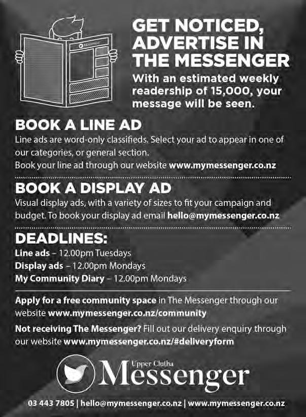 DO YOU GET The Messenger delivered? If you don’t get one and you would like to, it’s easy! Just pick up a free Messenger sticker from our office at 24 Dungarvon St and put it on your letterbox. Please note, if you have a no circulars sticker and don’t have a Messenger sticker on your letterbox, it will affect your delivery. If you have any questions about delivery, please contact us 03 443 7805 or hello@mymessenger.co.nz