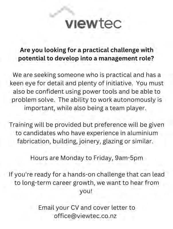 LOCAL BUILDING COMPANY looking for a builder with lead hand experience and a hammer hand. Call Hamish on 0210 8119 485.