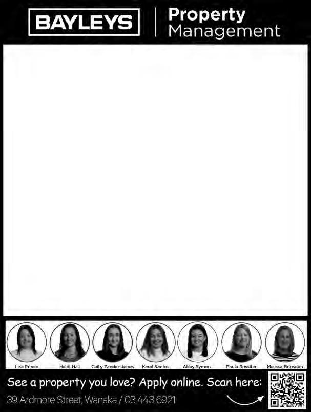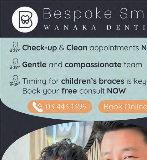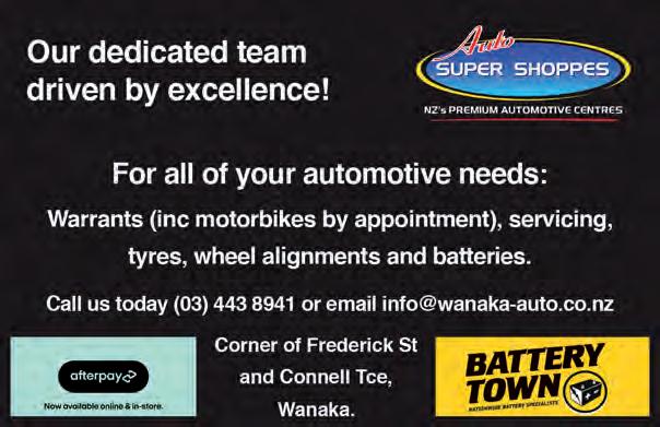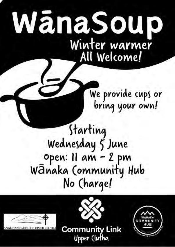 Rotary Club of Wanaka. 6.00pm, The Albie Tavern. New members welcome. Pat He ernan 021 569 890. Walking Group. Di erent weekly walk followed by co ee. Join New Life Ladies, ph 021 996 133 Heather. Bridge Club, Presbyterian Church, 91 Tenby Street. www.otagosouthlandbridge.org.nz/wanaka 11.15am, seated by 11.05am. Social. Bring lunch.