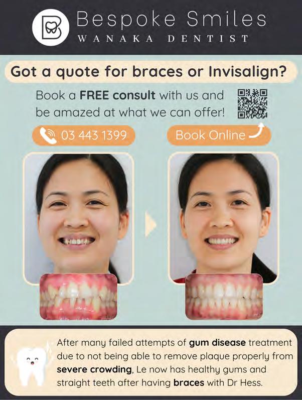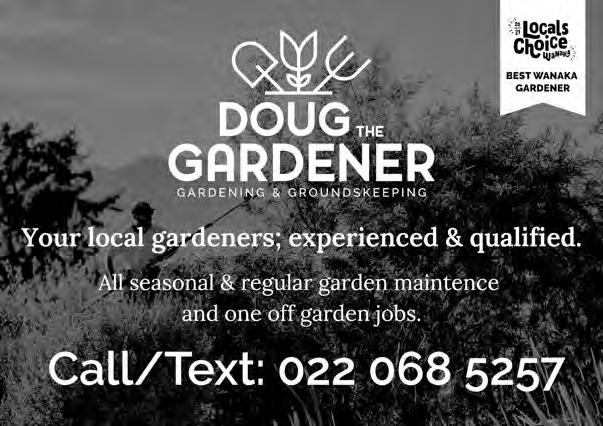 Rotary Club of Wanaka. 6.00pm, The Albie Tavern. New members welcome. Pat He ernan 021 569 890. Walking Group. Di erent weekly walk followed by co ee. Join New Life Ladies, ph 021 996 133 Heather. Bridge Club, Presbyterian Church, 91 Tenby Street. www.otagosouthlandbridge.org.nz/wanaka 11.15am, seated by 11.05am. Social. Bring lunch.