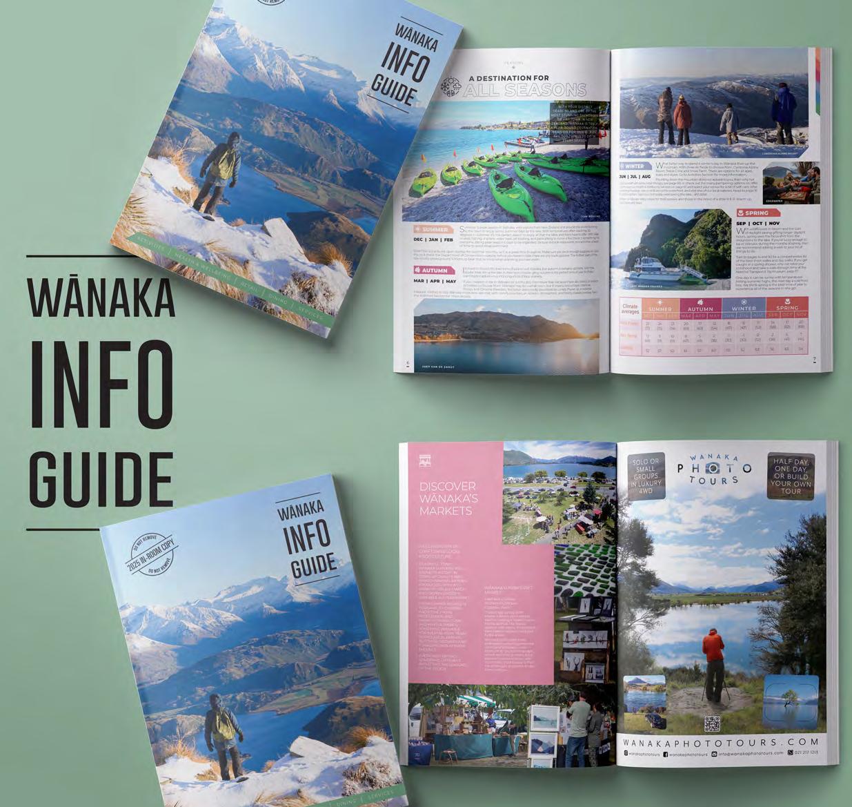 If you have a B&B/Airbnb, hotel, motel, or hostel, then pick up your free copies from the Messenger office located at 24 Dungarvon St. The Wānaka Info Guide is produced annually, is free of charge and distributed throughout Wānaka’s hospitality sector. It is the ‘go to guide’ of where to go, what to do, where to dine and shop when visiting our beautiful region.