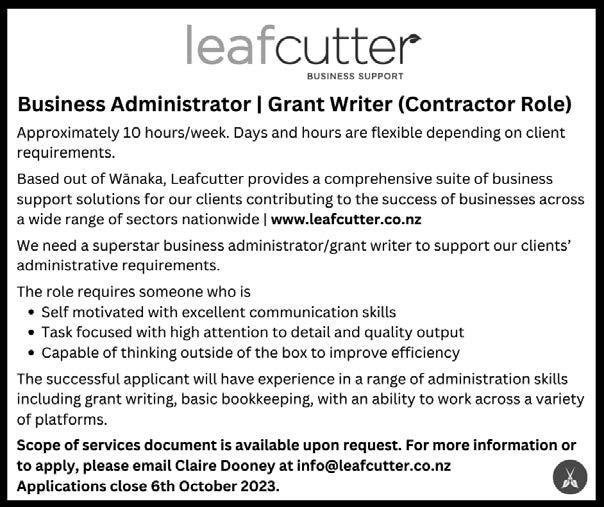 Upper Clutha Messenger 20 th September 2023 Locally owned and operated in your community. Email nathan.simon@jennian.co.nz or call 021 632 244