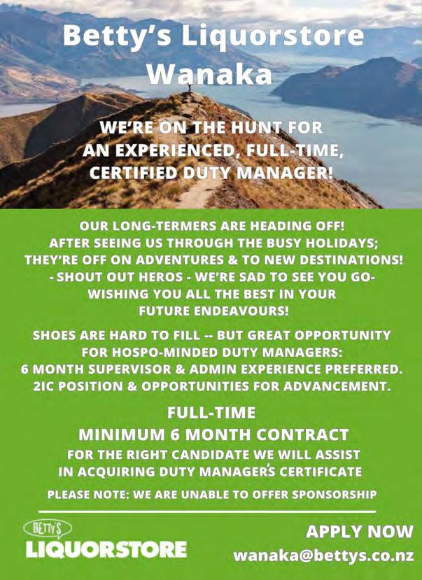 Drop in and see Gary at 9 Lakeside Road, Wanaka or email CV and cover letter to info@lakesidewanaka.co.nz