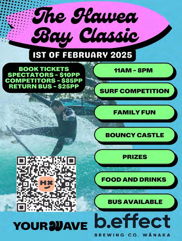 Wanaka parkrun, 7.50am brie ng. Wanaka Station Park. All ages/ tness welcome to walk, jog, run, volunteer. Free registration www.parkrun.co.nz