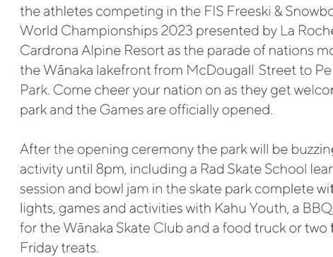 Wanaka Parkrun, 8.50am brie ng. Wanaka Station Park. All ages/ tness welcome to walk, jog, run, volunteer. Free registration parkrun.co.nz