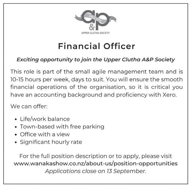 Upper Clutha Messenger 23rd August 2023 THE LAST THING WE WANT JEN TO THINK ABOUT, IS US. THE RENEWABLE ENERGY EXPERTS Call solarZero on 03 443 2212 or visit solarzerocentralotago.co.nz today. At solarZero we take a load off your mind and your electricity bill with cheaper, cleaner and more reliable energy. Subscribe to our comprehensive, no-fuss energy service that can deliver 100% of your power needs from Toitū certified carbon positive energy. You’ll also benefit from backup electricity during outagesand will never be charged with any hardware, repair or replacement costs. WECANHELP ThisfundisavailablethankstoalimitedcontractwiththeMinistryofSocialDevelopment. Monday-Friday, 9am-5pm communitynetworks.co.nz 034437799 WānakaCommunityHub 34McDougallStreet One-offhouseholdandlivingcostssuchas firewood,fuelandpowerbills; School-basedcostsforstudentssuchasuniforms, stationeryorcampfees. TheCommunitySupportFundishereto helpindividualsandwhānauintheUpper Cluthawithsomeoflife'strickyexpenses: Anyonecanaccessthisfundviaahealthprofessional, suchasaGP,socialworkerorPublicHealthnurse, andwereviewreferralsregularly. Headtoourwebsiteorgetintouchformoreinformation. Your Friendly Local Store 7.00AMTO 10.00PM 70 Ardmore St, Wanaka