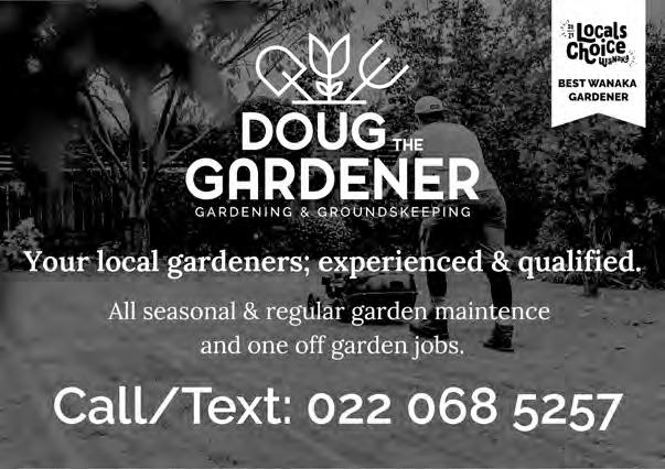 Rotary Club of Wanaka. 6.00pm, The Albie Tavern. New members welcome. Pat He ernan 021 569 890. Walking Group. Di erent weekly walk followed by co ee. Join New Life Ladies, ph 021 996 133 Heather. Bridge Club, Presbyterian Church, 91 Tenby Street. www.otagosouthlandbridge.org.nz/wanaka 11.15am, seated by 11.05am. Social. Bring lunch.