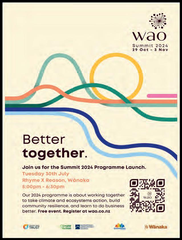 Wanaka parkrun, 9.00am brie ng. Wanaka Station Park. All ages/ tness welcome to walk, jog, run, volunteer. Free registration www.parkrun.co.nz