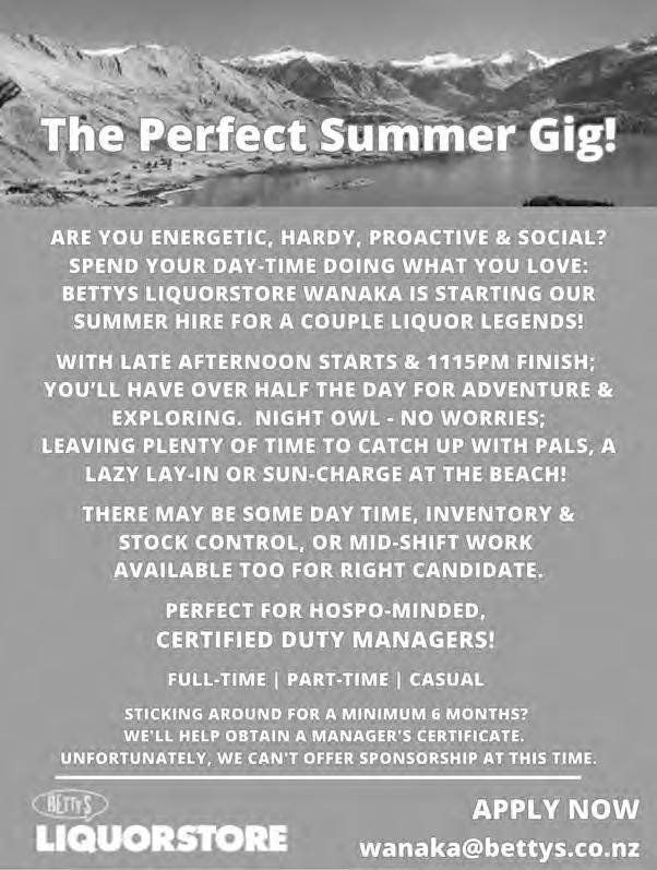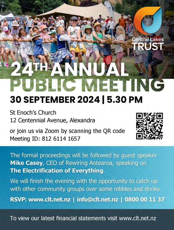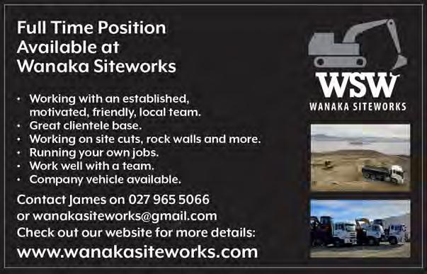 St Ninian’s Presbyterian Church, Sunday service at 10.00am. St Ninian’s Way, Hawea Flat. All welcome! Wanaka Baptist Church. 5.30pm, Community Hub, 34 McDougall St. Join us for worship and fellowship! Central Otago Wakatipu Cycling Club rst race of the season. Find us on Facebook.