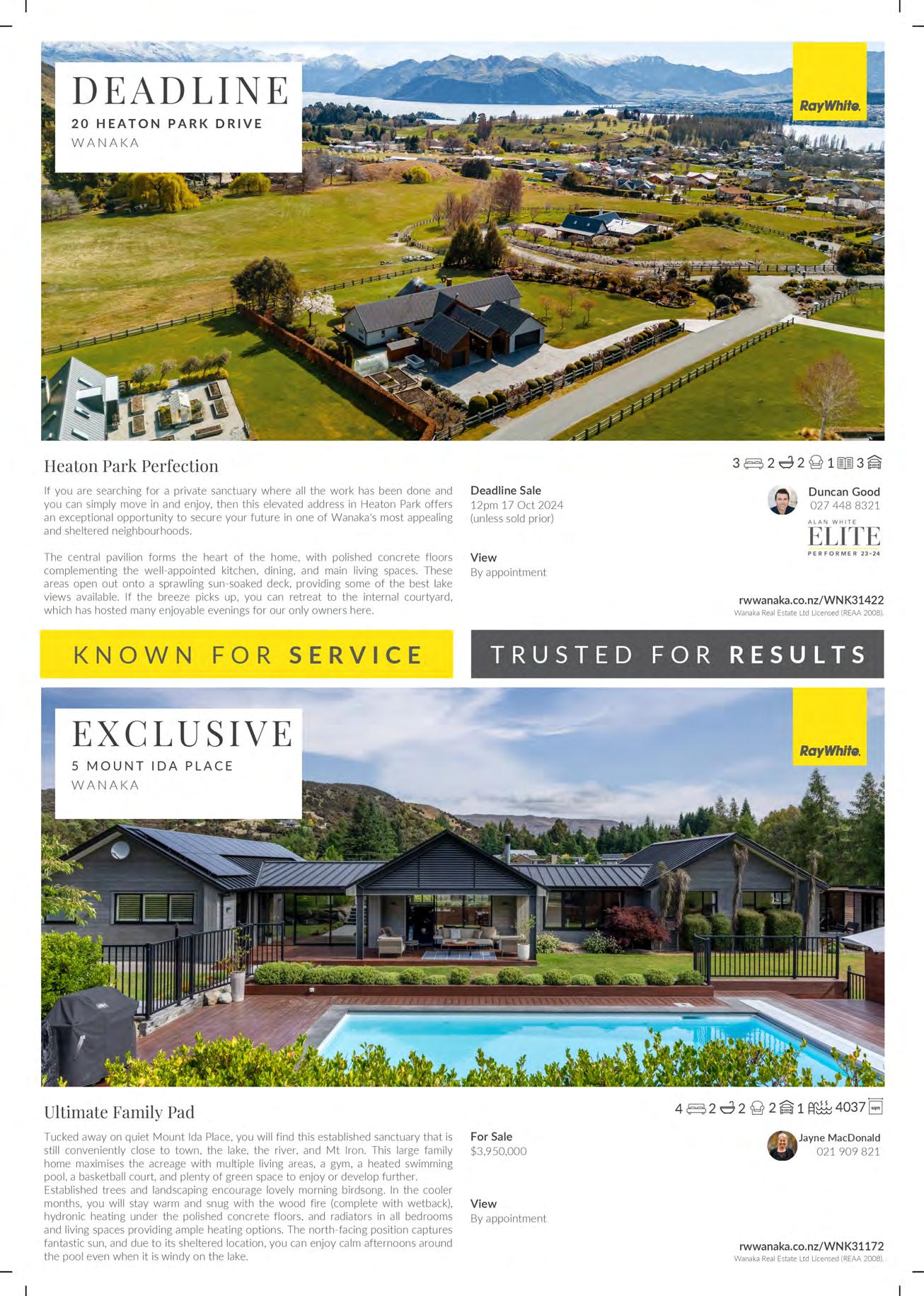 Deadline Private Treaty (unless sold prior) 4pm, Friday 15 November 2024, 62 Ardmore Street, Wanaka. Viewings are by appointment, contact Scott or Sharon for more information or to view.