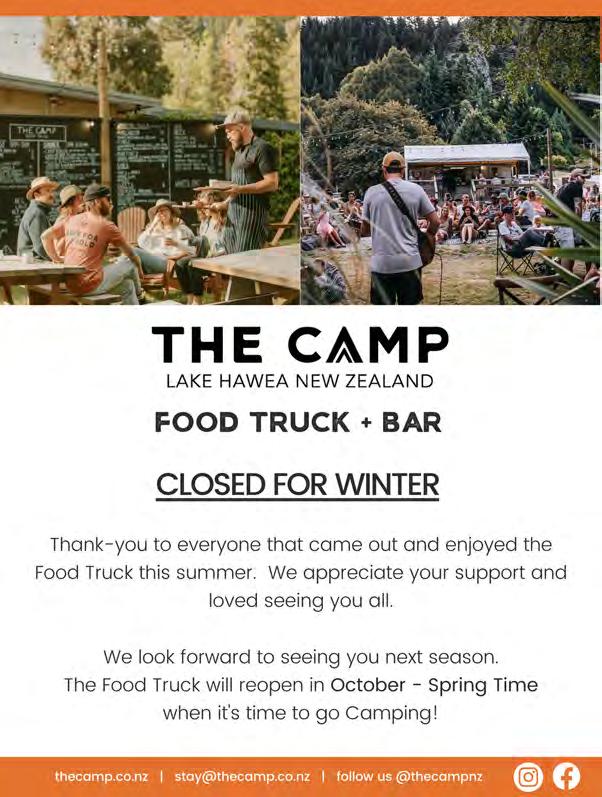 Upper Clutha Messenger 27th March 2024 • Auto Electrical and Air Conditioning • COFs • Heavy Recovery 86 Church Rd, Luggate, 03 488 4335 www.transportrepairs.co.nz TRUCK AND TRAILER REPAIRS AND MAINTENANCE Give the gift of relaxation with an Edgewater Gift Card Enjoy an unforgettable stay in our newly refurbished rooms or dine at our lakefront restaurant. See our website for more. Gift Card bayleys.co.nz