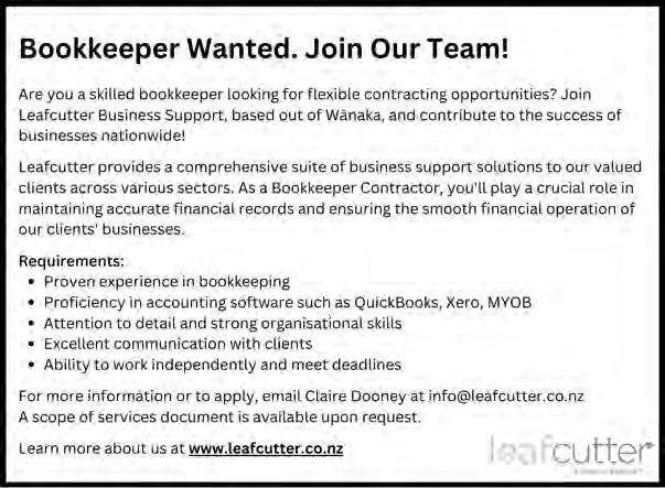 To apply for this permanent, full-time role, send your CV and a cover letter detailing your suitability for the role and how you'll contribute to the team's success to bexs@leafcutter.co.nz by 5pm, 3rd March. Visit www.rwwanaka.co.nz/about/careers for the full position description.