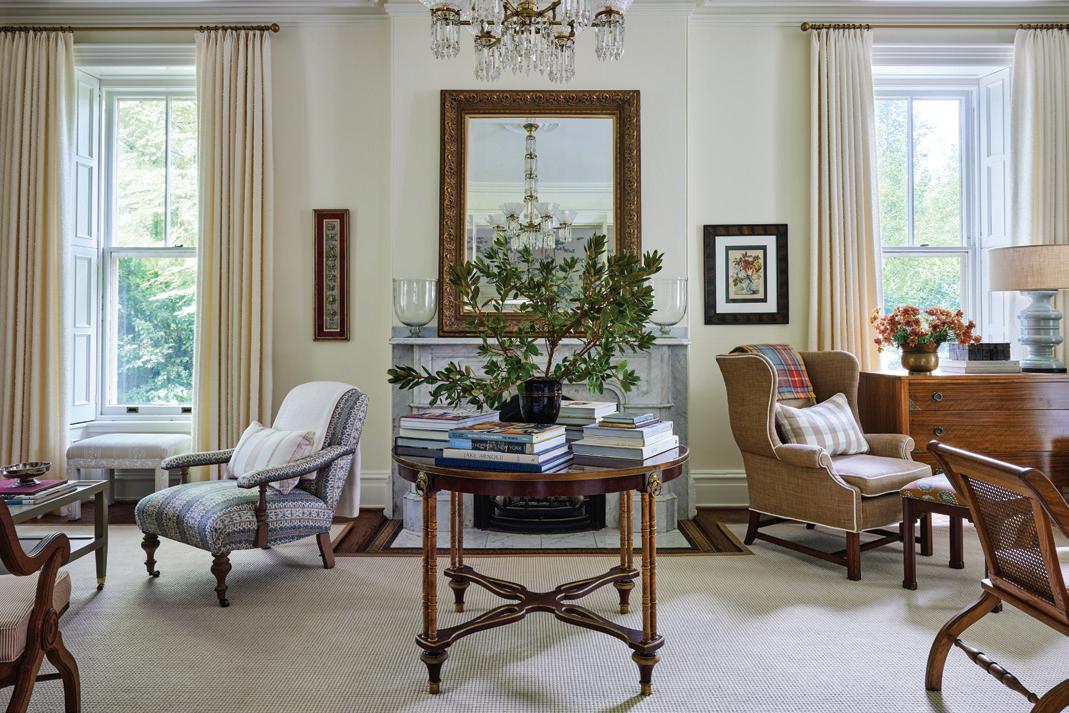 original crystal chandelier, rewired by the homeowners several years ago. The original windows and hardware were also restored by local artisans—R&B Restoration Carpentry and Monroe Coldren and Son, respectively—underscoring the home’s heritage with handcrafted care.