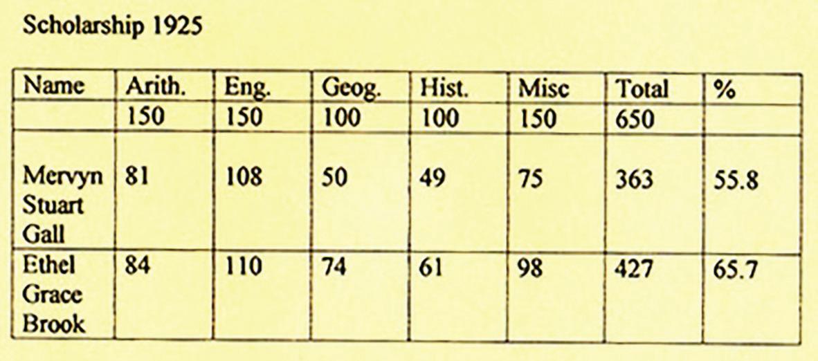 Ethel Grace Brook was the first girl to pass the Scholarship Examination at The Gap State School in 1925. Ethel passed with 65.7% while Mervyn Gall, the head teacher’s son, also passed with 55.8%.