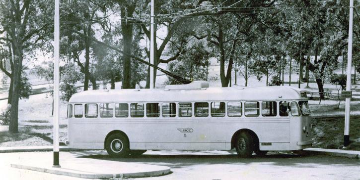 The buses were introduced in 1951 and stopped running in March 1969, one month before the trams stopped.