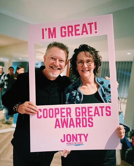The ‘Cooper Greats Awards’ were held on 17 June – awarded by Jonty Bush MP. Congratulations to everyone – and both Kym and myself are very humbled and proud to have received an award, along with many very well-deserving people across our Cooper Electorate. See our cover story for all details and names.